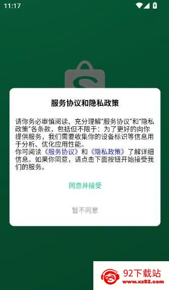 1.首先打开软件阅读协议和隐私政策内容后,点击“同意并接受”按钮进入APP