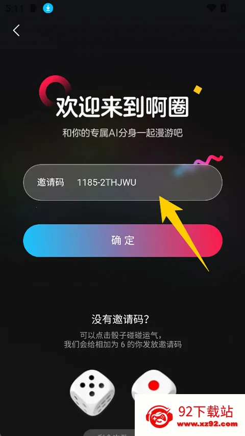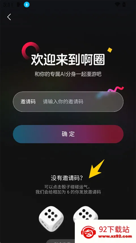 1、打开登录app后填写邀请码,如果没有可以通过掷骰子来获取邀请码