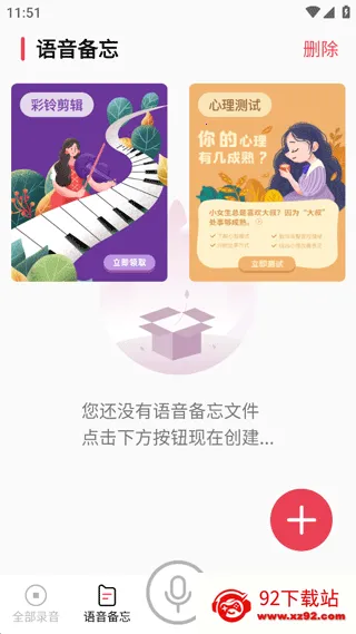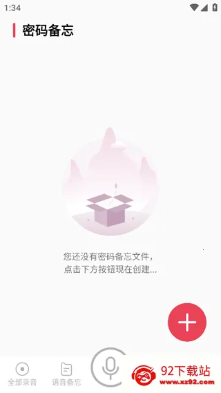 1、点击首页下方的“语音备忘”,并点击按钮新建