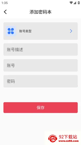 2、之后点击按钮新建,添加密码本后页面输入你的账号信息即可保存。