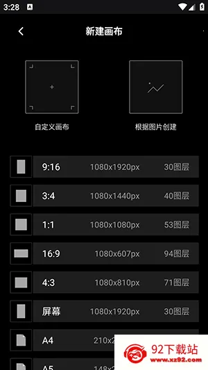 2、在创作工具界面,选择自己需要的画布尺寸与样式。