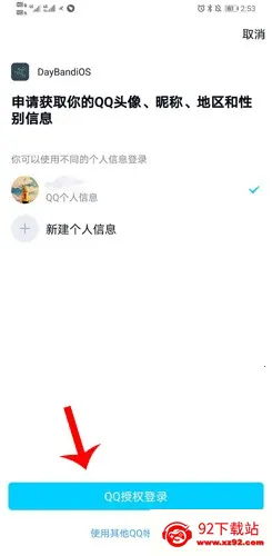 1.下载并安装DayBand手环app,完成后打开软件,点击qq头像选项