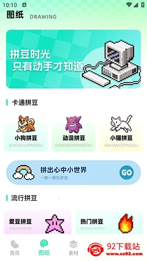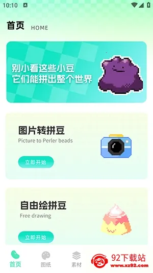 1、进入首页为大家提供了图片转拼豆、自由绘拼豆等功能。