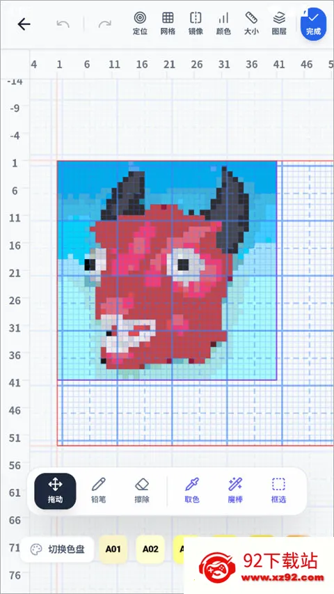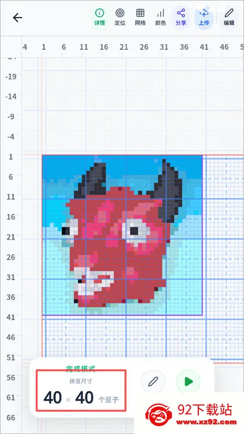 2、导入图片后,自动将普通照片转换成拼豆图纸,这里显示拼豆大小