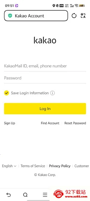 3、输入你的kakao账号和密码,点击登录,完成注册。