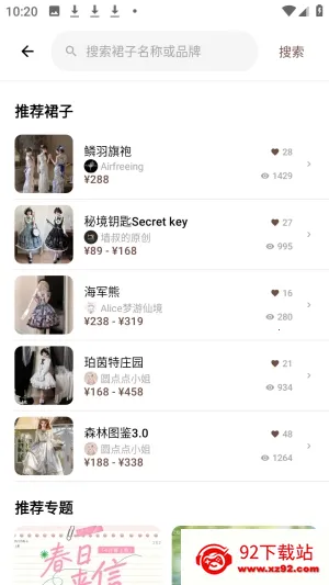 2、用户可以通过搜索裙子的品牌名或者类型进行查看。