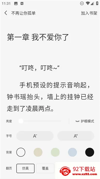 5、阅读界面,还可以自定义调整字号大小,背景颜色,翻页方式等。