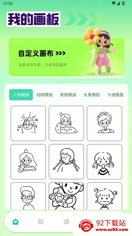 1.打开爱比漫画板,首页中提供各种模板,同时还有各种自定义画布的功能。
