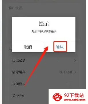 进入是否确认清理缓存提示界面,点击【确认】。