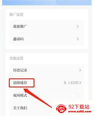 进入我的界面,点击【清除缓存】。