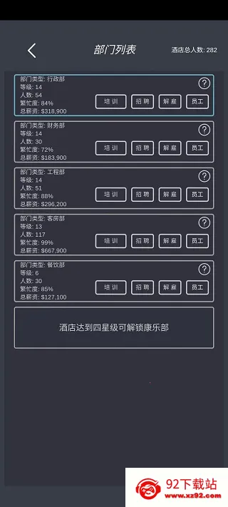 3、独特玩法模式:采用独特玩法模式,让你从零起步,亲手制定管理策略,充分感受酒店发展的魅力。