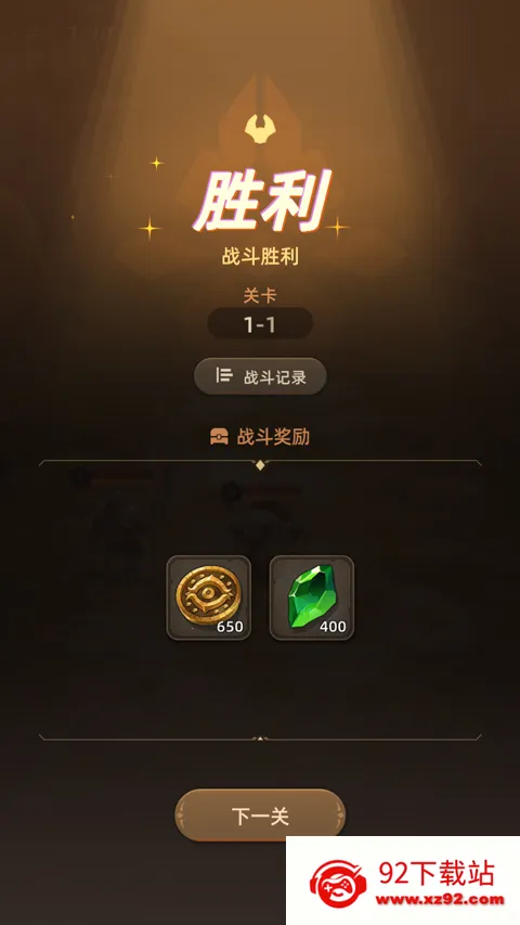 8、当成功击败关卡内所有敌人即可胜利通关,并获得部分战斗奖励。