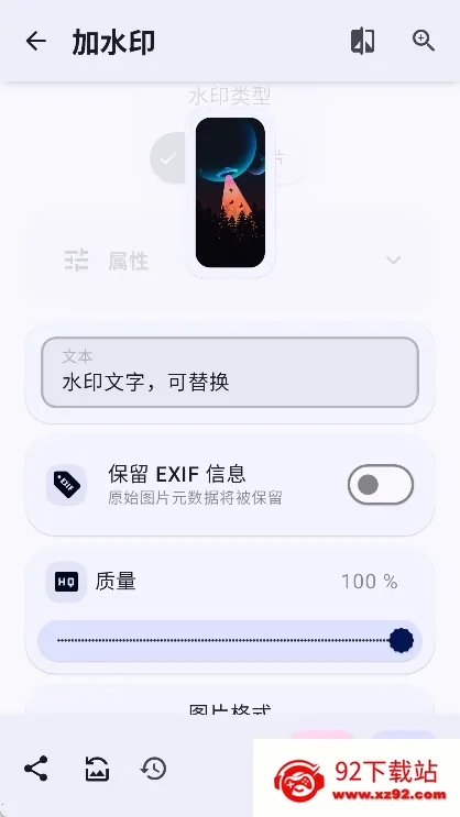 5.而在加水印功能中可以自定义水印的内容、位置、透明度等。