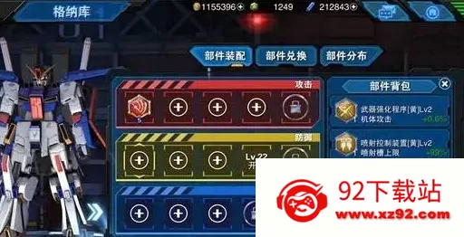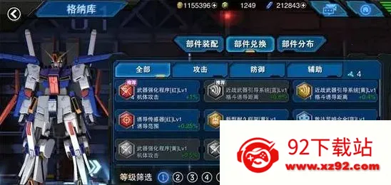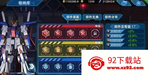 2、根据各类部件的能力,均能对机体属性各项进行一定比例的提高,诸如格斗的诱导距离、喷射槽上限、机体耐久与防御的加成等等。