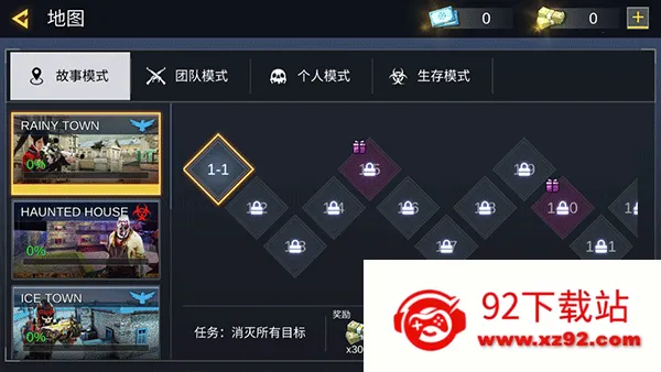 2、玩家在游戏中可以选择自己喜欢的模式进行畅玩,其中提供了故事、团队、个人、生存模式这四种玩法模式可以体验;