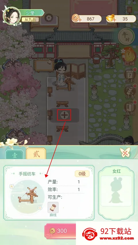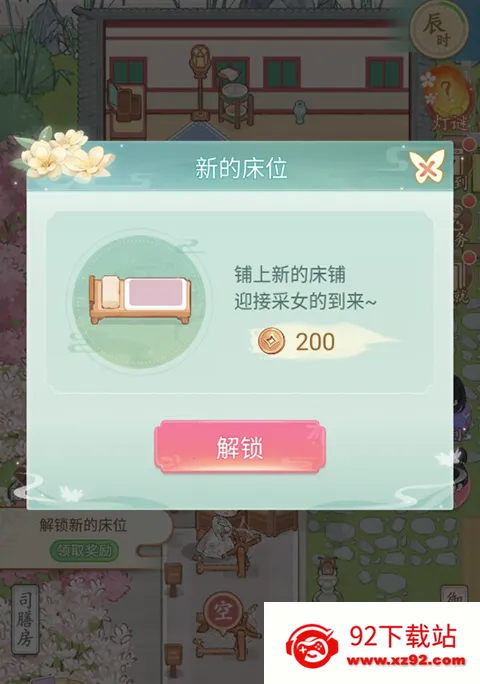 玩家点击床铺区域加号就可以新建一个床铺,迎接采女的到来。