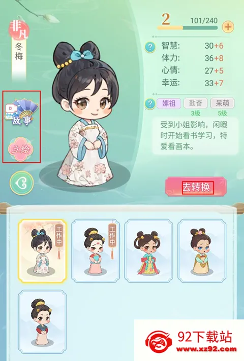 1、完成采女选拔后就会变为宫女,玩家在宫女页面可以查看其信息,还有专属故事以及立绘可以查看。