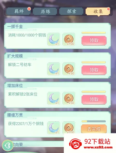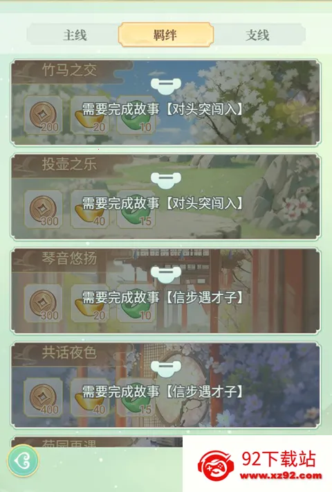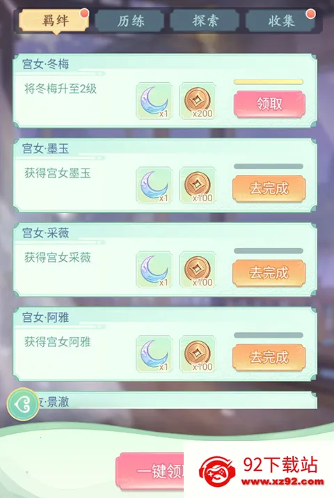玩家通过选拔、升级宫女、解锁故事羁绊等可以解锁羁绊成就,领取丰富成就奖励。