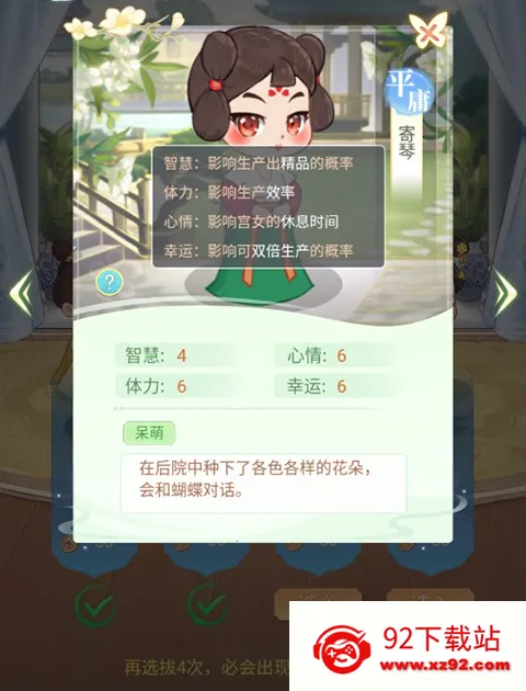 2、玩家可以点击采女查看信息来选择好采女。