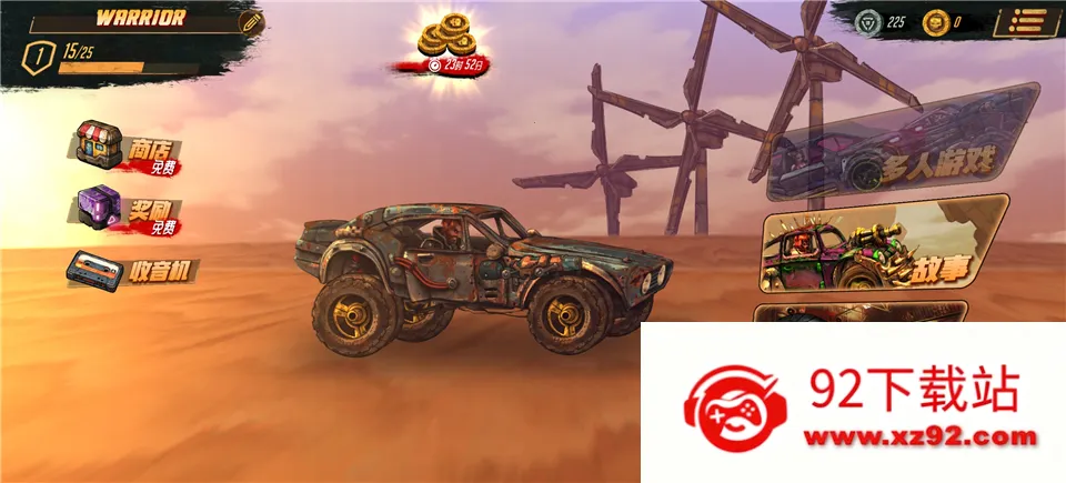 公路勇士1是一款竞速战斗游戏,玩家在荒野驾驶强化车辆,可单人或多人对战。能改装武器等提升性能,有多种车辆、丰富任务。还能更换装备音乐,通过战斗解锁新内容,感受实时多人竞速战斗的刺激。