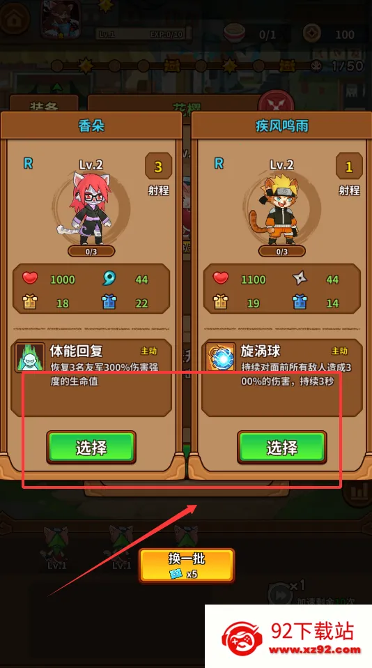 1、在游戏初期需要着重收集相同角色进行合成进化,通过集齐三个相同忍者能够实现升星突破。