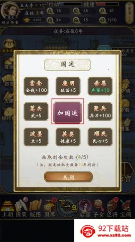 7、有五次免费抽取国运的机会,次数用完了需要每十年才能刷新。