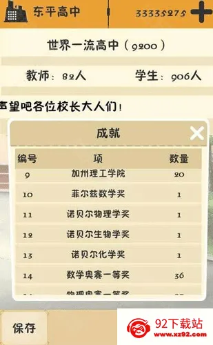 这是一个以不破产的前提下提升声望的游戏,教师声望要特级教师才给,高考就是学生考上顶级会有,(素质与考上国外大学有关,社团全点,感觉社团一点也不影响奥赛,后期点不点都是2个一等奖)。