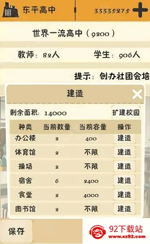在以校之名中,随着我们不断的开发和完善学校,学校等级也会不断提升,从普通高中到重点高中再到世界一流高中,下面雨落就为大家带来以校之名世界一流高中攻略。游戏中我们将建设一流的学校哦,让有钱人家的孩纸来上学,让优秀的孩纸来读书,所以以下攻略我们是走精品路线。