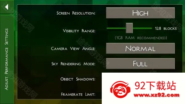 2、“settings”中的“performance”中,可对游戏中的画质进行自定义设置,对于设备配置较低的玩家,可适当的降低画质,来提高游戏的流畅性
