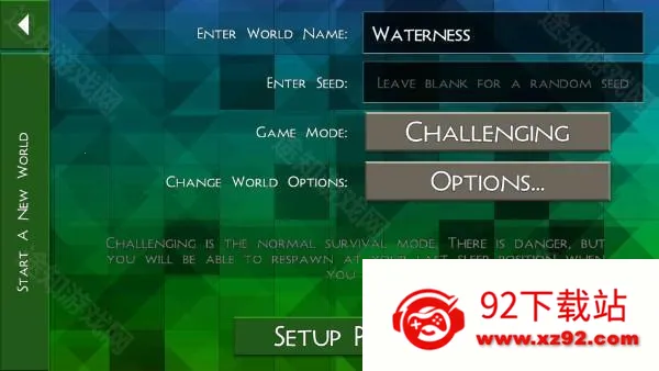 4、点击“new world”后,我们需要对创建世界,进行自定义的设置,设置完成后点击“setup player”
