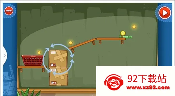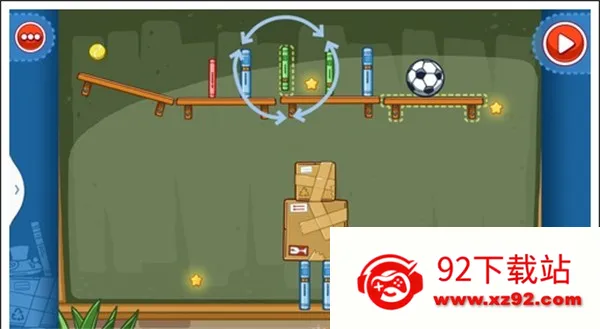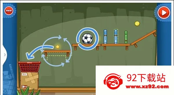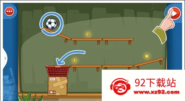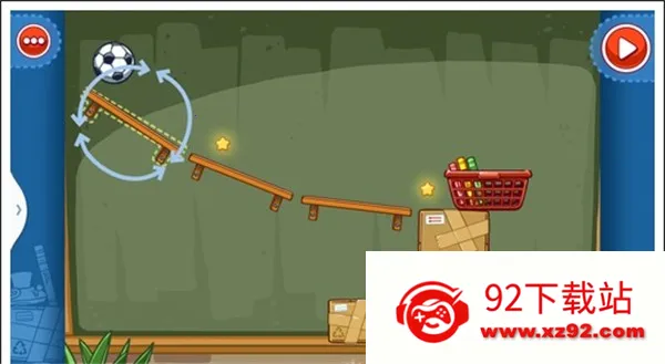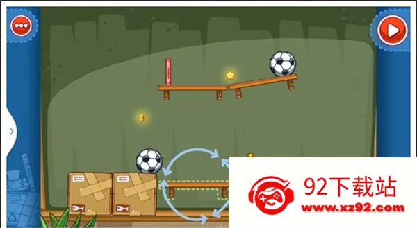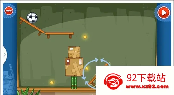 我们只需要将两个木箱重叠放在中间空白处,就可以让球飞过去,获得星星。