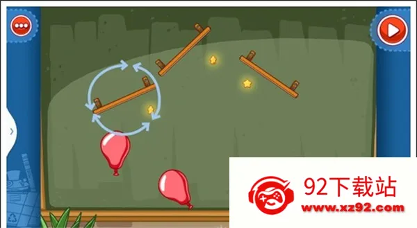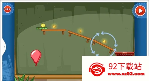 我们只需要将两个木板凳各自斜放在星星上头就可以让气球自由飞上去,获得星星。