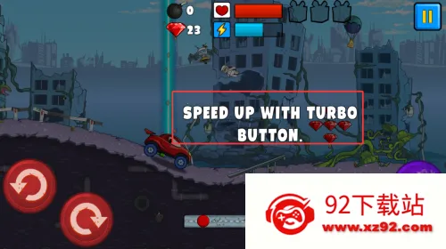 3、使用红框箭头指向的涡轮按钮,为车辆加速冲刺。