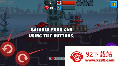 2、使用红框箭头指向的倾斜按钮,控制车辆保持平衡。