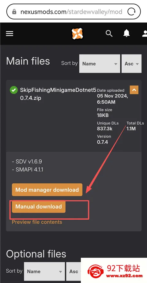 5、再下滑至Main Files处,点击Manual download。