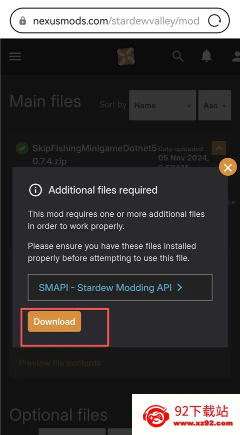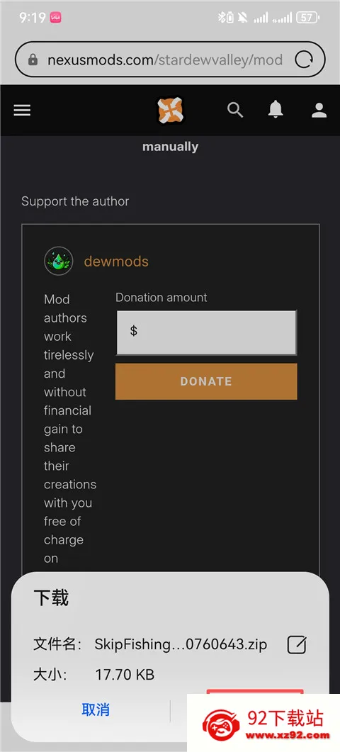 11、找到下载mod的地方,点击Skip fishing文件。