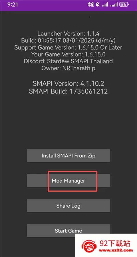 9、下载好mod后,打开smapi启动器,点击Mod Manager。