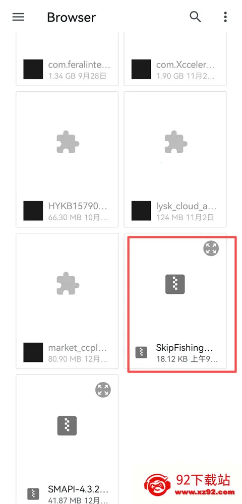 2、在手机文件中找到下载smapi文件包的文件夹,点击smapi文件包导入