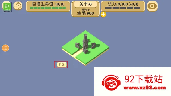 3、游戏的开始就是一个小小的板块,你需要点击“扩张”按键来扩大地图的面积。