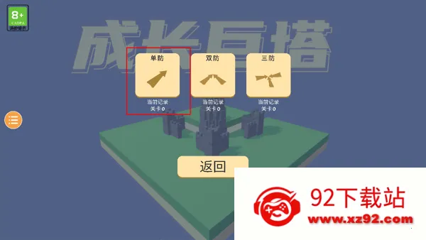 2、有三种塔防玩法模式:单防、双防、三防,以“单防”玩法为例。