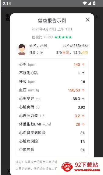 5、如此就可以查看相关的健康报告示例,清晰查看掌握。