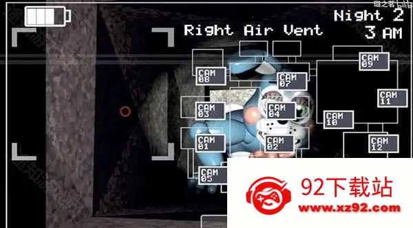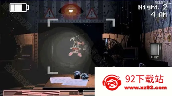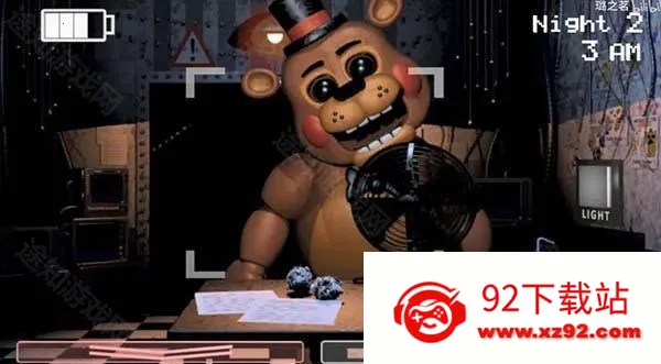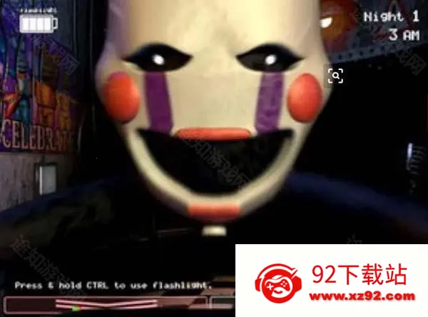 攻略:第一至第二晚没老玩具三人组,第三晚出现,流程上发条后放监控时无论有没有玩具熊,立马戴头套,没有或应对成功后左右通风管名照一次,闪一闪霍斯,然后反复即可。