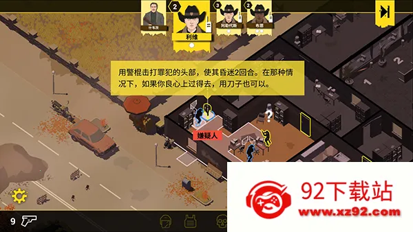 9、使用警棍击打罪犯的头部,可以让他昏迷2回合,趁现在,我们对他选择使用警棍,