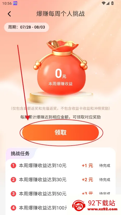 4、点击领取,也可以领取每周挑战奖励