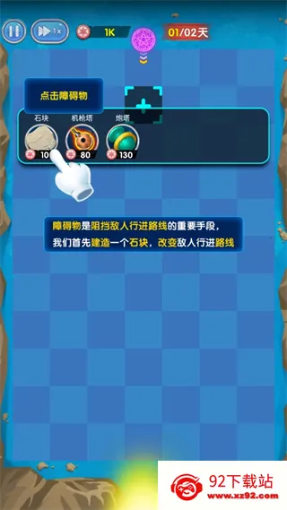 4、点击障碍物,阻挡敌人前进,改变敌人路线;