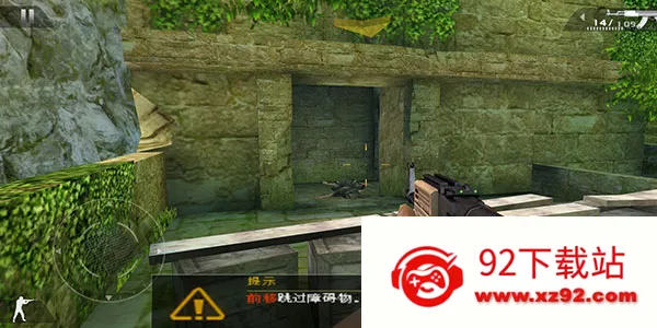 6、按住前进键并保持不放,即可自动跨越前方的障碍物,例如木板、箱子或低矮围栏。