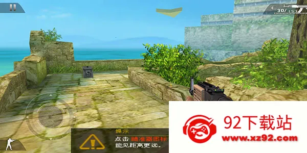 7、点击屏幕上的瞄准镜图标可以进入精确瞄准模式,不仅提升射击准确度,还能扩大可视范围。