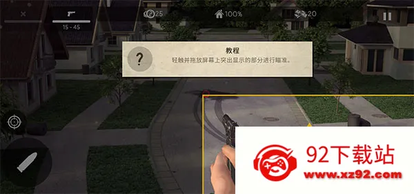 1、下载完成后进入游戏,轻触并拖放屏幕上突出显示的部分进行瞄准;