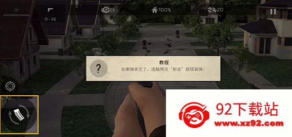 5、如果弹夹空了,连触两次"射击"按钮装弹;