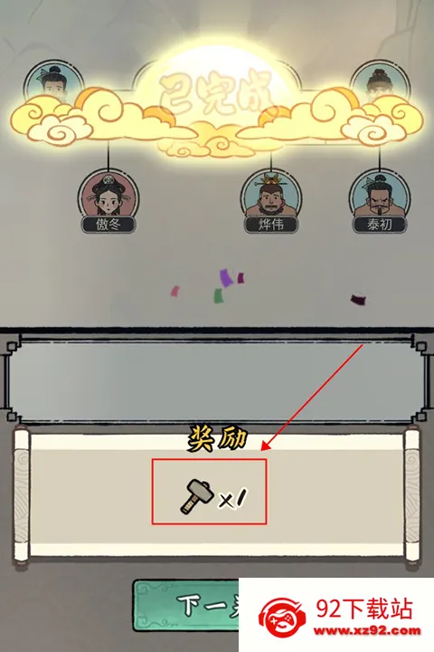 5、所有圆框正确填入就可以通关并获得锤子奖励啦。